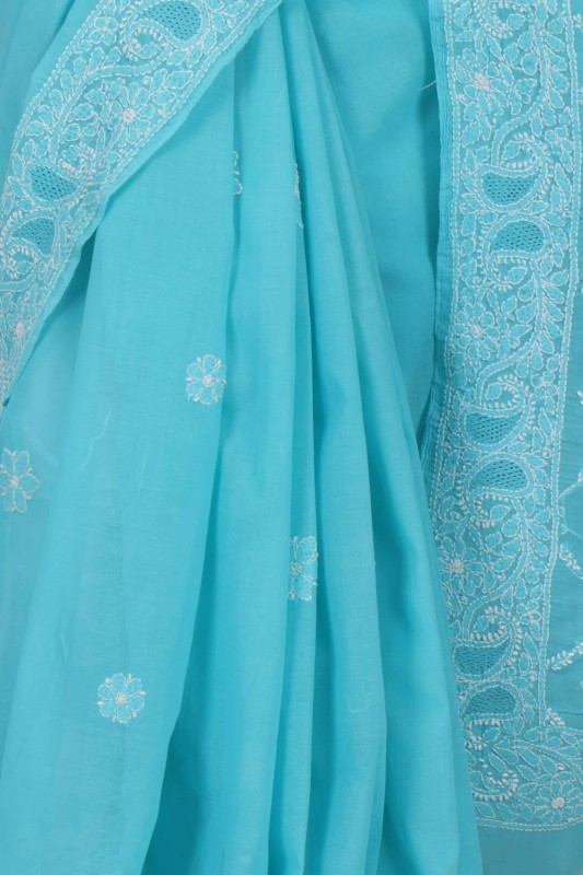 Ada Blue Cotton Lucknowi Chikankari Saree With Blouse A543779