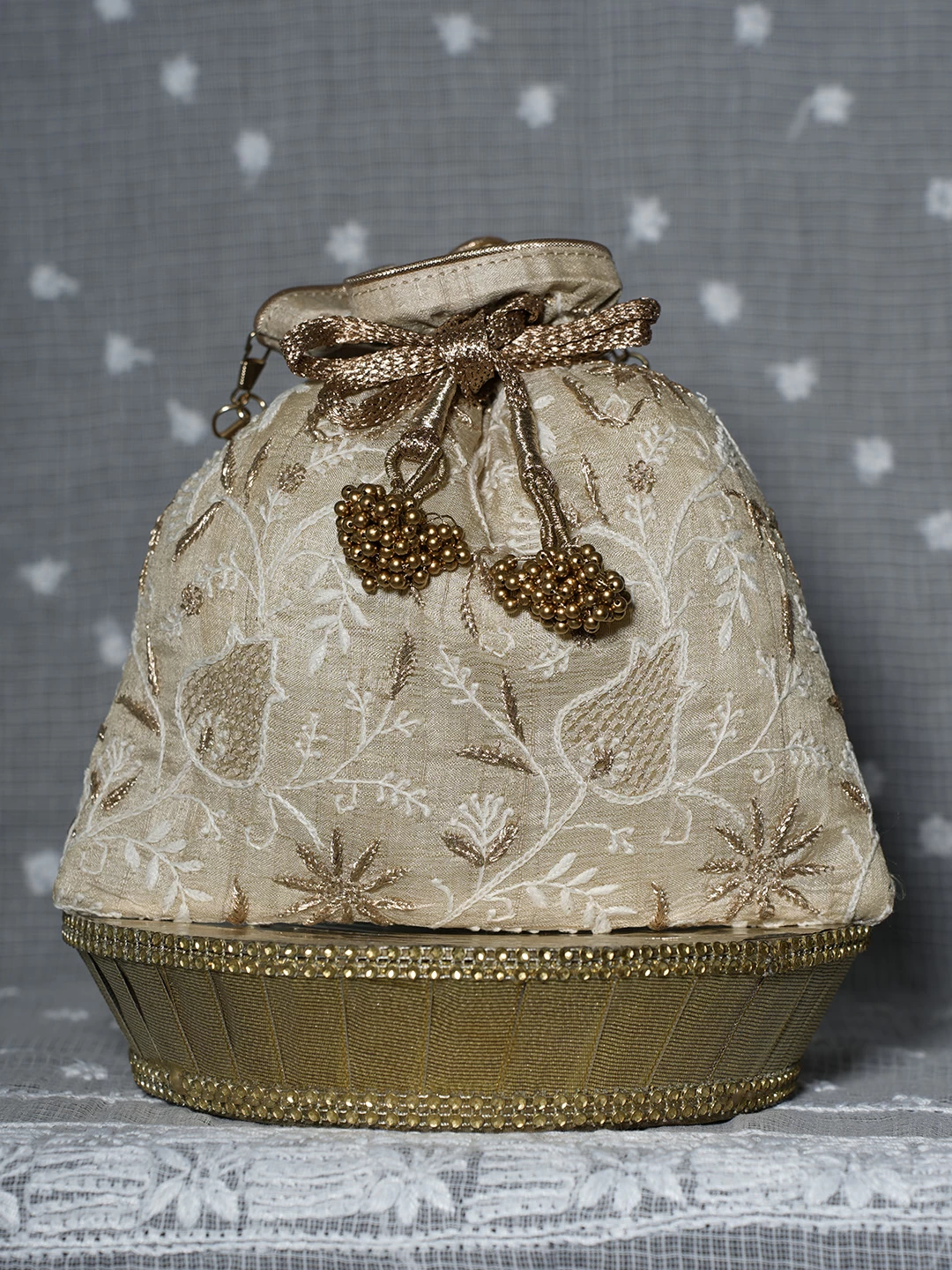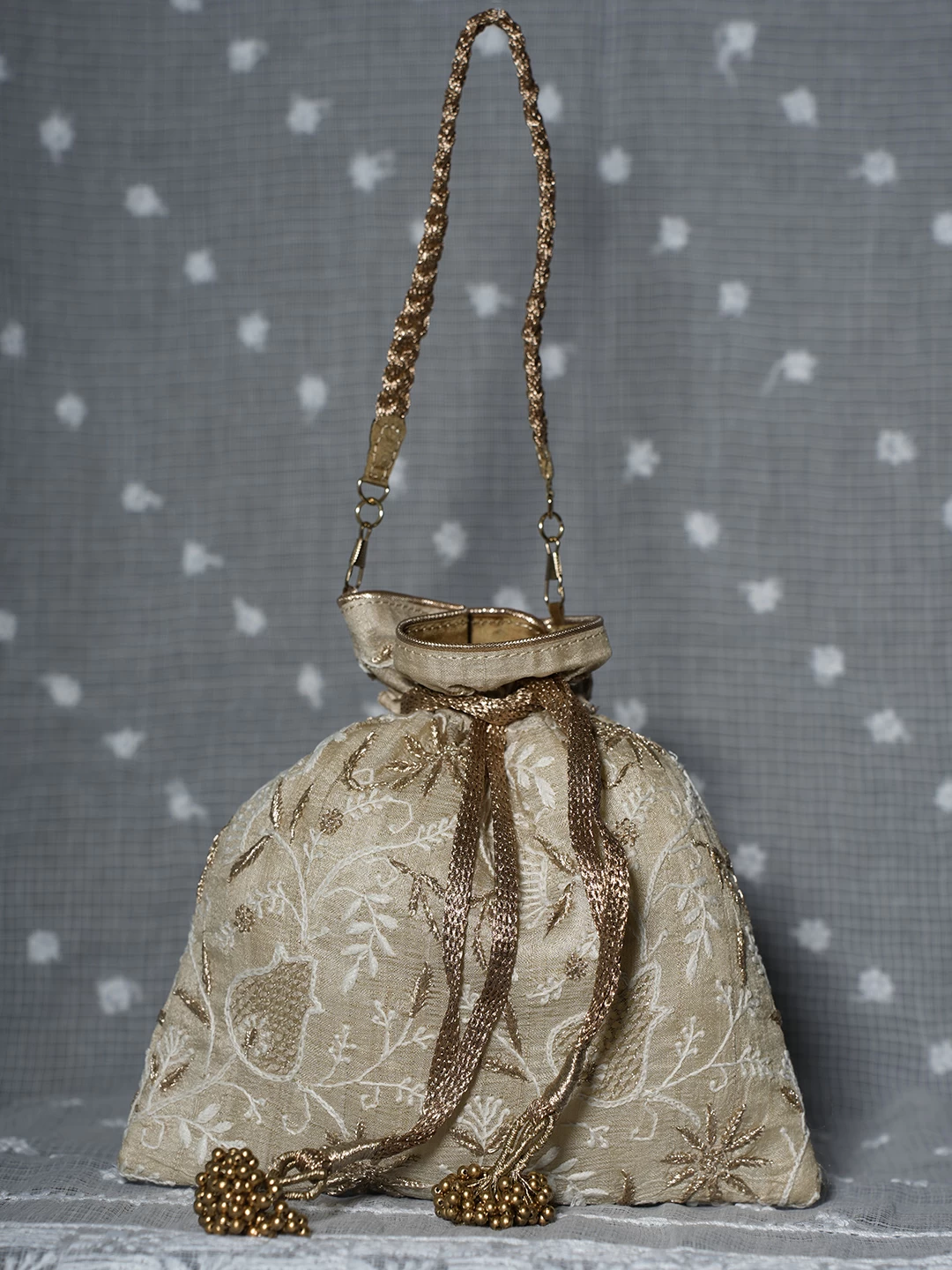 Ada Fawn Silk Lucknowi Chikankari Potli Bag 01A506761