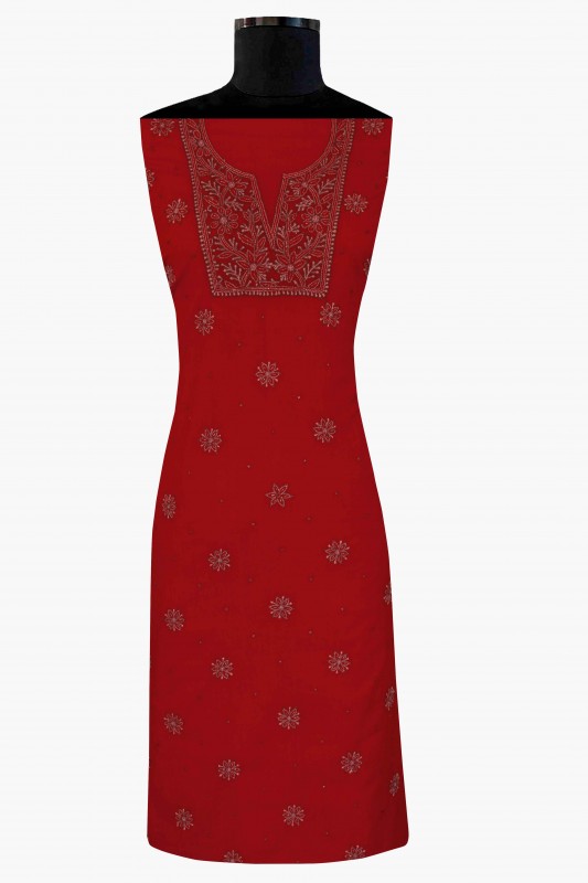 Ada Red Cotton Lucknowi Chikankari Kurta Piece A220500